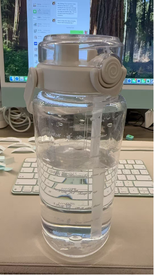 I’m known for my oversized 1.5 liter water bottle with a handle. I bring it everywhere, and yes, people laugh. But it’s my secret weapon.